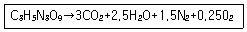 니트로글리세린의 분해 반응은 다음과 같다. 니트로글리세린 1을(227.1g)의 산소평형(OB)값은?