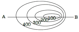 다음 평면도와 같은 지형을 AB로 자른 단면도는?
