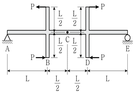 )를 구하였다. 상수 a와 b의 값은? (단, 보 AE의 휨강성 EI는 일정하고, 보의 자중은 무시한다)(순서대로 a, b)