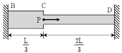 그림과 같이 C점에 축하중 P가 작용하는 봉의 부재 CD에 발생하는 수직응력은? (단, 부재 BC의 단면적은 2A, 부재 CD의 단면적은 A이다. 모든 부재의 탄성계수 E는 일정하고, 자중은 무시한다)