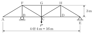 그림과 같은 트러스에서 무응력 부재의 총 개수는? (단, 구조물의 자중은 무시하며, 모든 부재의 축강성 EA는 일정하다)