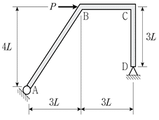 그림과 같이 B점에 수평력 P가 작용할 때, C점의 휨모멘트는? (단, 구조물의 자중은 무시한다)
