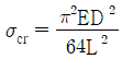 그림과 같이 지름이 D인 원형단면을 가지는 일단 고정 타단 자유인 탄성좌굴 기둥부재에 압축력 P가 작용하고 있다. 이에 대한 설명으로 옳지 않은 것은? (단, E는 탄성계수, I는 단면 2차모멘트이고, 자중은 무시한다)