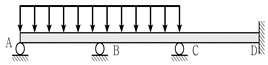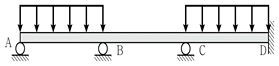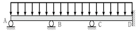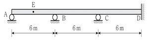 그림과 같은 연속보에 하향의 등분포 활하중이 작용할 때, E점의 정모멘트가 가장 큰 것은? (단, 휨강성 EI는 일정하고, 등분포하중의 크기는 모두 동일하다)