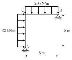 그림과 같은 부정정 구조물에서 정성적인 축력도로 옳은 것은? (단, 휨강성 EI와 축강성 EA는 일정하고, 자중은 무시한다)