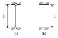 그림과 같이 구속조건이 다른 두 장주가 있다. 기둥 (a)의 좌굴하중이 100kN일 때, 기둥 (b)의 좌굴하중[kN]은? (단, 기둥의 휨강성 EI는 같고, 구조물의 자중은 무시한다)