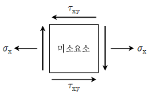 그림과 같은 평면응력상태에 있는 미소요소에서 발생할 수 있는 최대 전단응력의 크기[MPa]는? (단, σx=36MPa, τxy=24MPa)