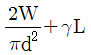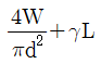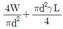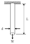그림과 같이 천장에 수직으로 고정되어 있는 길이 L, 지름 d인 원형 강철봉에 무게가 W인 물체가 달려있을 때, 강철봉에 작용하는 최대응력은? (단, 원형 강철봉의 단위중량은 γ이다)