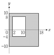그림과 같이 빗금 친 단면의 x축에 대한 단면2차 모멘트[mm4]는? (단, x축과 y축의 단위는 mm이다.)