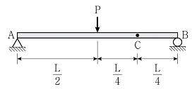 그림과 같이 하중 P가 단순보에 작용할 때, C점에서의 처짐은? (단, 보의 자중은 무시하고, 휨강성 EI는 일정하다.)