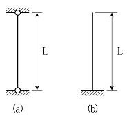 그림 (a) 장주의 좌굴하중이 20kN일 때, 그림 (b) 장주의 좌굴하중[kN]은? (단, 두 기둥의 길이, 재료 및 단면 특성은 모두 같다.)