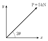 그림과 같이 경사방향으로 힘 P가 작용할 때, y축 방향의 분력 Py의 크기[kN]는?