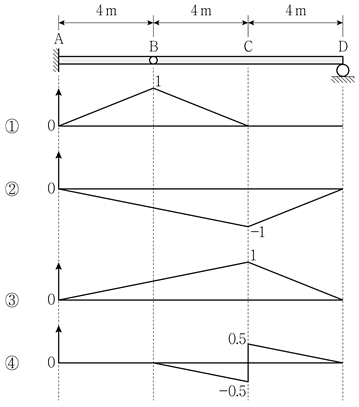 그림과 같은 게르버보에서 점 C의 전단력에 대한 영향선은?
