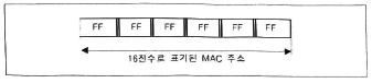 다음 그림은 16진수 열두 자리로 표기된 MAC 주소를 나타낸다. 모든 필드가 FFFF, FFFF, FFFF로 채워져 있을 때 이에 해당되는 MAC 주소는?