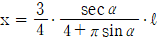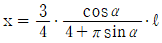 트롤어구에 이용되는 길이 ℓ인 평면 전개판이 수중에서 영각 α로 예인될 때 받는 수력저항의 압력 중심 x을 표현한 식은?