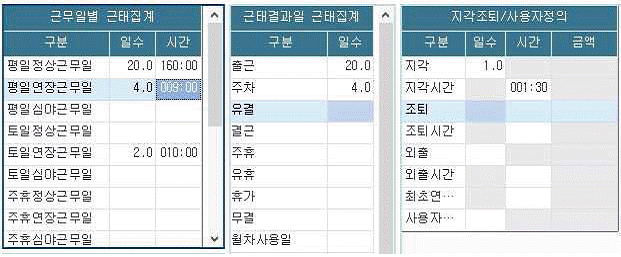 다음은 A회사 김한국 사원의 2015년 9월 근태결과입력 화면이다. 시급이 10,000원이고 연장근무시간은 50%를 가산하여 지급한다면 김한국 사원의 9월 연장근로수당은 얼마인가?