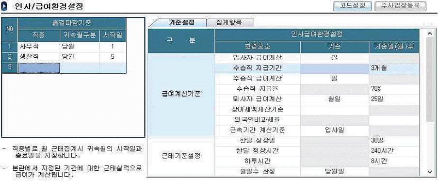 다음은 핵심ERP의 인사/급여환경설정 화면이다. 이 화면에 설정된 내용을 기준으로 8월 15일에 입사한 인사부 A사원(수습직)의 연봉이 29,760,000원인 경우, A사원의 8월 급여액은 얼마인가?