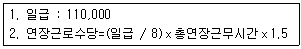 귀속연월 2016년 11월의 근태내역과 책정임금을 바탕으로 아래 [보기]의 '연장근로수당' 계산식을 이용하여 계산 시, '이종현' 사원의 연장근로수당은 얼마인가? 단, 원단위 금액은 절사 표기한다. (본 문제는 시뮬레이션 문제로서 [실기메뉴]의 메뉴를 활용하여 문제에 답하시오.)