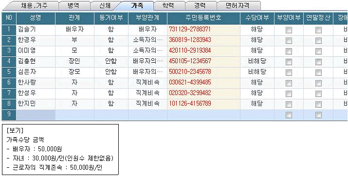 다음은 인사기록카드 메뉴의 일부화면이다. 다음 [보기]와 화면을 참고로 한 다음 설명 중 가장 적합한 것은 무엇인가?