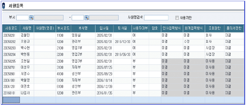 다음은 핵심 ERP 시스템관리의 [사원등록] 메뉴에 대한 내용이다.[사원등록] 메뉴에서 등록한 정보가 인사관리의 인사관리의 [인사정보등록]에 자동으로 반영되는 데이터로 적절하지 않은 것은 무엇인가 ?