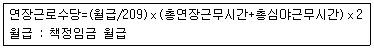 2017년 7월 귀속 근태내역이 입력되어있다. 아래 [보기]의 계산식을 이용한 '노희선' 사원의 '연장근로수당'을 계산하면 얼마인가? 단, 계산식 내 소수점은 절사 처리한다. ( 본 문제는 시뮬레이션 문제로서 [실기메뉴]의 메뉴를 활용하여 문제에 답하시오.)