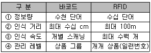 다음은 현행 바코드와 RFID 기술을 비교한 표이다. 잘못된 구분 항목은?