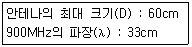 안테나에서 방사에 의해 전자파가 생성되기까지의 거리를 근거리장(near-field)이라고 하고 이후의 거리를 원거리장(far-field)이라 부른다. 900MHz의 근거리장과 원거리장의 경계가 되는 거리는 얼마인가?