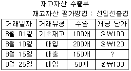 다음 재고자산 수불부 자료를 참고로 2016년 8월의 매출원가는 얼마인가?