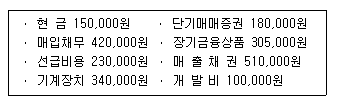 다음 [보기]의 항목들 중에서 유동자산의 합계금액은 얼마인가?