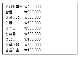 다음 [보기]의 자료를 참고로 하여 계산한 자산총액은 얼마인가?