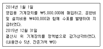 다음 [보기]의 내용을 참고로 하여 계산한 2015년 12월 31일 결산시 감가상각비와 감가상각누계액은 각각 얼마인가?