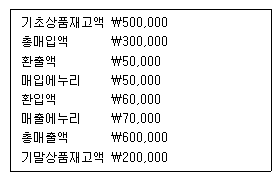 다음 [보기]의 자료를 참고하여 계산한 상품매출원가는 얼마인가?