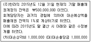 매출채권에 대한 대손충당금 설정과 관련된 다음 [보기]의 2015년도 결산 시 수정분개사항을 보고 2015년 결산 이전까지의 장부상 대손충당금 잔액은 얼마인가?