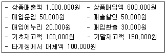 다음 보기를 이용하여 매출총이익을 계산하면 그 금액은 얼마인가?