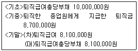 다음은 퇴직급여충당부채 관련 자료이다. 결산 시 전 임직원이 퇴직한다고 가정할 경우 지급해야 할 퇴직금 총액을 구하면?