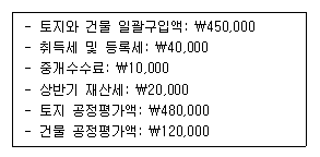 다음 [보기]는 ㈜생산성의 유형자산취득과 관련된 자료이다. 토지자산의 취득원가는 얼마인가?