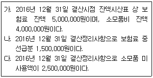 다음 중 2016년도 당기 보험료로 산정될 금액은 얼마인가?