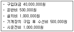 (주)한국에서는 공장에서 사용할 기계장치를 구입하였으며, 다음 자료를 보고 취득원가를 계산하면 얼마인가?