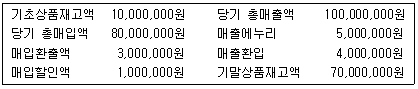 다음 [보기]의 내용을 기준으로 순매입액과 순매출액을 계산하면 얼마인가?(순서대로 순매입액, 순매출액)(오류 신고가 접수된 문제입니다. 반드시 정답과 해설을 확인하시기 바랍니다.)