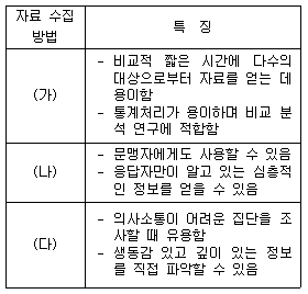 자료 수집 방법 (가)~(다)에 대한 설명으로 옳은 것은?