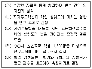 다음은 연구 단계를 순서 없이 나열한 것이다. 이에 대한 설명으로 옳은 것은?