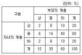 다음 표는 부모 세대와 자녀 세대의 계층적 위치를 나타내고 있다. 이에 대한 설명으로 옳은 것은?