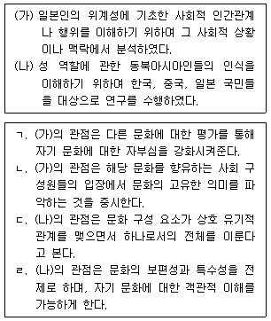 (가), (나)에 나타난 문화 연구의 관점에 대한 일반적인 설명으로 옳은 것만을 <보기>에서 고른 것은?