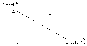 다음 그림은 갑국의 X재와 Y재에 대한 생산 가능 곡선을 나타낸 것이다. 이에 대한 설명으로 옳은 것은? (단, 생산 가능 곡선은 직선이며, 갑국은 X재와 Y재만 생산한다)