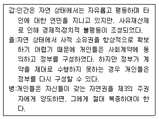 다음은 대표적인 근대 정치 사상가들의 주장을 정리한 것이다. 갑~병에 대한 설명으로 옳은 것은?