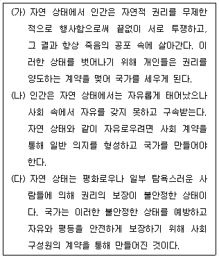 (가)~(다)의 근대 정치사상에 대한 설명으로 옳은 것은?