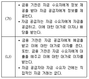 (가)와 (나)는 금융 시장의 유형을 분류한 것이다. 이에 대한 설명으로 옳은 것은? (단, (가)와 (나)는 직접 금융 시장, 또는 간접 금융 시장 중 하나이다)