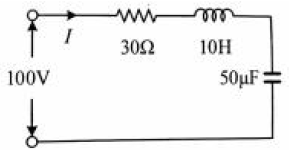 그림의 직류 회로가 정상상태일 때, 회로에 흐르는 전류는 몇 A인가?