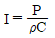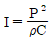 소리의 세기를 나타내는 식은? (단, I : 소리의 세기(watt/m2), P : 음압, ρ : 공기의 밀도, C : 공기 중에서의 음속)