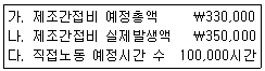 (주)대한은 제조간접비를 직접노동시간을 기준으로 배부하고 있다. 다음 자료에 의하여 제조간접비 예정배부율을 계산하면 얼마인가?